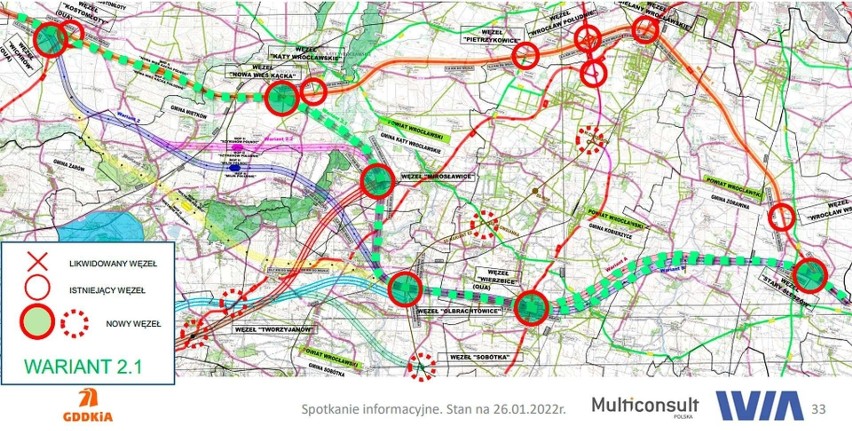 Jak informuje oddział Generalnej Dyrekcji Dróg Krajowych i Autostrad we Wrocławiu w przedstawionym podsumowaniu prac związanych z planowaną rozbudową autostrady A4 na Dolnym Śląsku. Zgodnie z przyjętymi ustaleniami, część trasy zostanie poprowadzona po istniejącym śladzie (stary ślad), jednak kluczowy odcinek ma w przyszłości przebiegać nowym korytarzem, wyraźnie oddalonym od Wrocławia w porównaniu z obecnym przebiegiem drogi.